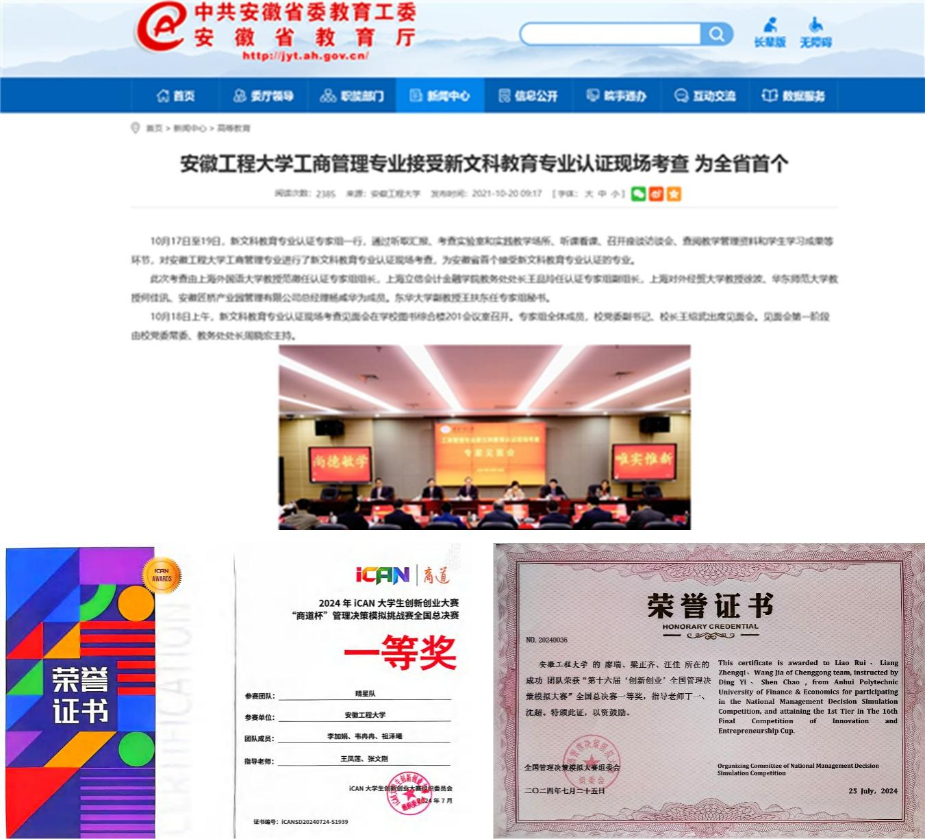 师资培养方面。近三年支部新增党员2名,党员教师晋升教授2名、副教授2名、党员教师参加各类培训20人次,党员教师教学零事故、师德师风考核百分百合格。获安徽省爱岗敬业好青年提名奖1名、校级先进个人1名、校级优秀共产党员2人、校级学雷锋优秀事迹获得者1名、校级优秀工会干部1名。教育教学方面:党支部所在工商管理专业获批国家一流本科专业建设点,为安徽省首个通过长三角新文科教育专业认证的专业。专业已建设国家一流课程2门,省级课程思政示范课程1门,省级精品课程3门,省级示范课7门。支部现有全国重点规划教材3项,省级规划教材2项,省级一流教材1项。在实验室和实践基地建设方面,已建立3个省级实践教学基地。获省部级以上教研项目21项;获省级教学团队1个、获“省级教学名师”、“省级教坛新秀”荣誉3人次;获省部级教学成果奖5项;科学研究研方面:获国家社科重大项目子课题1项、国家自然科学基金1项、国家社科基金2项、教育部人文社科项目2项、省级课题近20项,横向课题到账经费500余万元,发表SCI/SSCI/CSSCI检索论文30余篇;人才培养方面:学生省部级及以上竞赛奖励100多项,党支部以全国管理决策模拟大赛为平台,打造学校“一院一品”重点建设项目,连续11年斩获全国一等奖。获批省级及以上大学生创新创业训练计划项目20余项。党员教师每年积极为学生提供简历制作、面试指导、职业发展和考研指导,专业学生考研率和就业质量稳步提升。