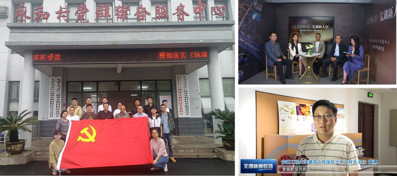 与企业党支部、社区党委开展联学共建,共享党建经验、联合开展主题党日活动。组织党员教师深入乡村等开展高标准农田建设、乡村规划设计等志愿服务,为地方基础设施建设提供技术支持。与湾沚区六郞镇永和村达成“大学小镇”全域党建共建协议,助力“和美乡村”建设。党员教师接受校外媒体关于专业技术方面的专访活动,宣传了土建行业相关法律法规和专业技术知识,同时也提升了我校土木工程专业学科知名度。