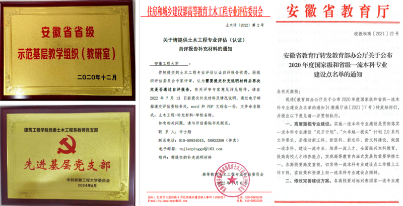 发挥党支部书记“头雁效应”,以党员模范带头推进专业核心任务。党员骨干牵头承担专业工程教育认证、硕士学位点申报、审核评估等核心任务,目前土木工程专业已获批省级一流专业建设点、省级示范基层教学组织,土木水利专业硕士学位点成功落地,工程教育认证自评报告通过审核,专家进校考察在即。