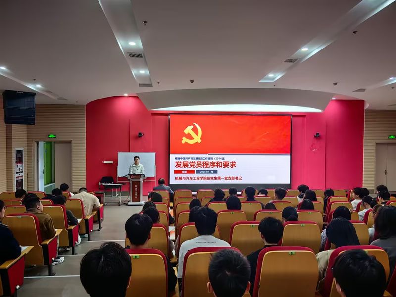 11月5日,机械与汽车工程学院第十二期入党积极分子培训班在国际工程师学院校区梦溪报告厅开班。校党校指导组成员倪谷村、伊长文,学院党委副书记秦广虎、培训班班主任许典舟、学生党员代表及全体培训班学员参加班仪式。仪式由秦广虎主持。