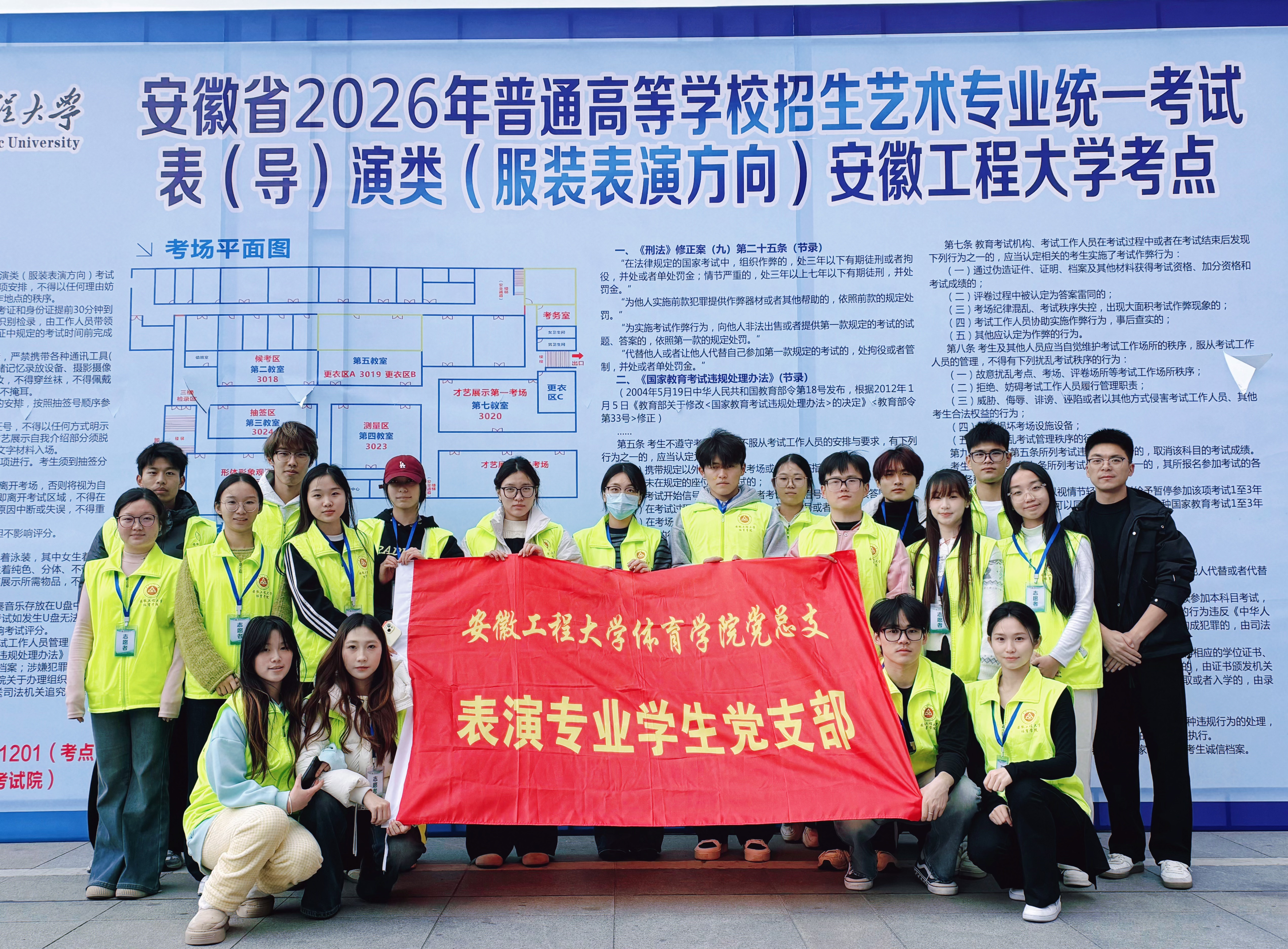 12月9日至12日,安徽省2026年普通高校招生艺术类专业统考表(导)演类(服装表演方向)考试顺利在我校举办。体育学院师生党员参加了统考志愿服务工作,为考试工作顺利进行保驾护航。