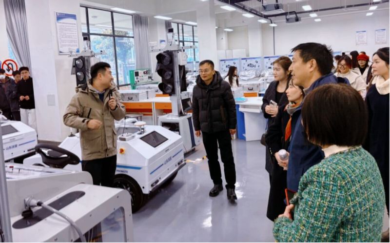 为深入推进跨学科融合育人,强化翻译硕士研究生的工程素养与实践能力,打造“外语+工程”复合型党建育人模式,外国语学院副院长韩利敏积极对接机械与汽车工程学院党委,协调和组织研究生导学支部的主题党日活动。12月19日下午,研究生导学支部全体党员在学院副院长李新国、支部书记王钰及部分研究生导师的带领下,赴国际工程师学院,开展“研学工科前沿,赋能翻译实践”主题党日活动,重点走访了机械与汽车工程学院相关实验室。机械与汽车工程学院副院长张振,智能汽车线控底盘系统安徽省重点实验室主任肖平、研究生支部书记程雷以及部分研究生党员给予了热情接待。