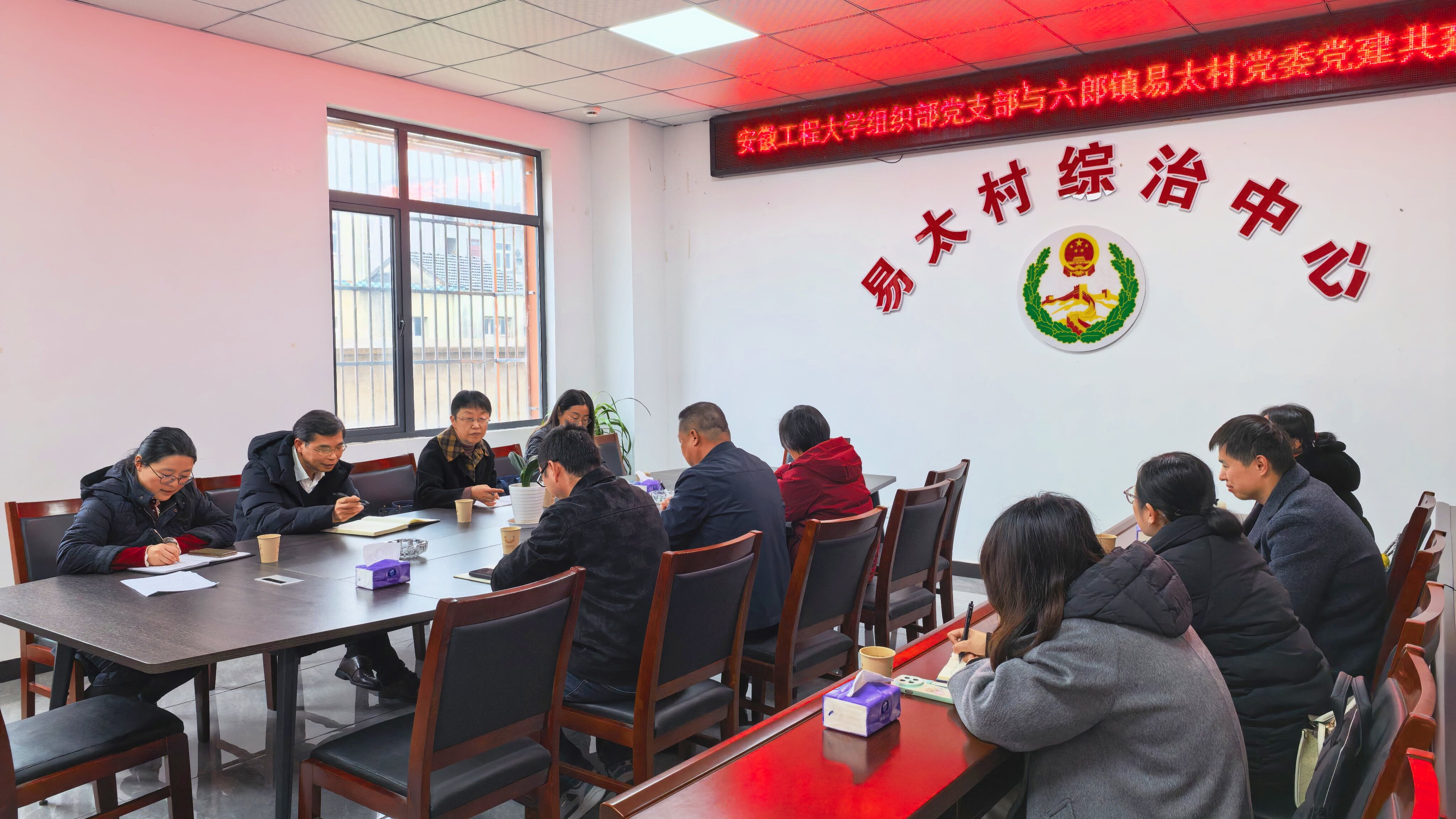活动中,召开党建共建座谈会,以党建为引领聚焦和美乡村建设、科技下乡惠民等展开深入交流,坚持务实谋事、实干成事,着力破解基层发展实际难题。六郎镇易太村党委书记钱扬平详细介绍了村党组织建设、产业规划等情况,希望借助高校在组织建设、科技研发、规划设计等方面的资源优势,破解乡村发展瓶颈、激活基层治理内生动力,以实打实的举措办好民生实事。我校挂职干部、六郎镇副镇长殷茂力结合基层工作实际,介绍了六郎镇“小陶村”“东八村”等周边村落的特色发展做法,分享了各村以党建统领乡村治理、培育特色产业、深化文旅融合、涵养乡风文明的成熟经验与实践成效,为校地双方拓展共建范围、深化合作维度提供了鲜活参考。组织部负责人表示,开展“大学小镇”党建共建,是推动党建工作与中心工作深度融合的重要实践举措,更是高校下沉资源、服务乡村振兴的责任所在。组织部党支部将充分发挥高校智力优势,推动学校优质党建资源、科技资源、人才资源精准下沉基层一线,助力易太村提升基层党组织凝聚力、战斗力,以科技赋能乡村产业升级,以人才支撑乡村全面振兴,用发展实绩检验学习教育成效。