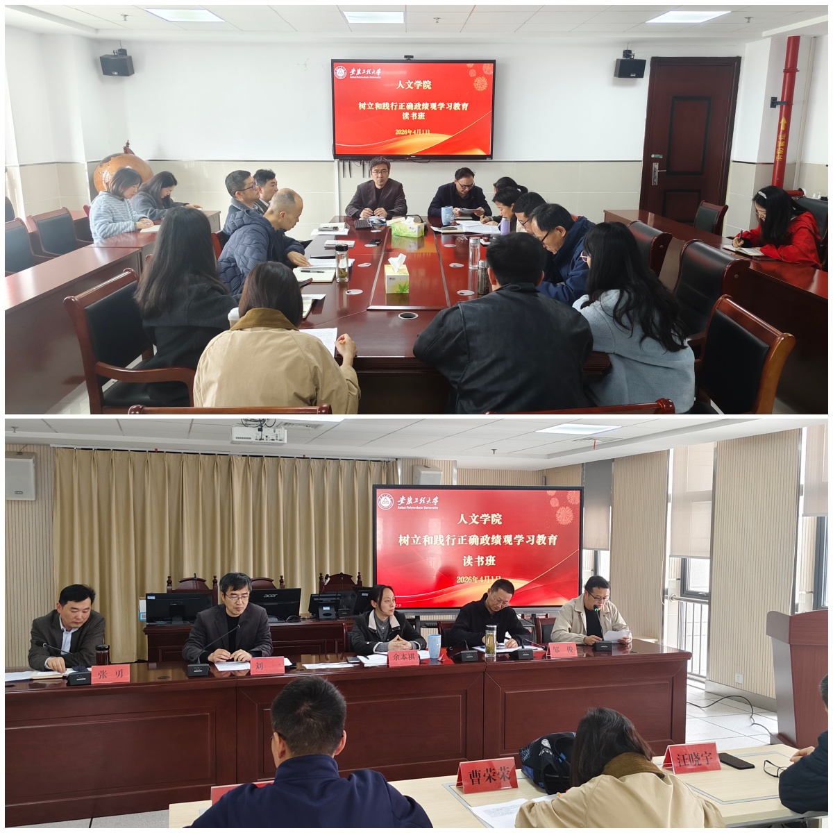 3月30日至4月1日,人文学院举办树立和践行正确政绩观学习教育读书班,院党委书记刘一主持并作开班动员和结业讲话,学院领导班子成员、党委委员、各党支部书记、系部主任及骨干教师代表参加读书班。