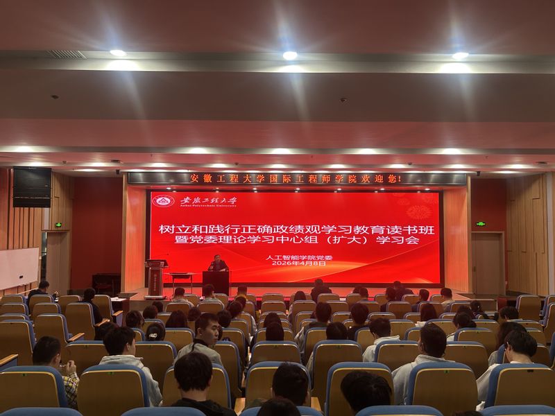 4月8日,人工智能学院举办树立和践行正确政绩观学习教育读书班暨党委理论学习中心组(扩大)集体学习会。党委理论学习中心组全体成员、科级干部、各支部书记及全体师生党员参加学习,会议由学院党委书记任家钱主持。